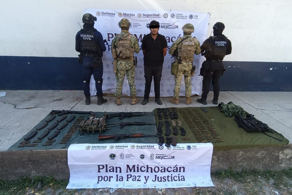 Un sujeto conocido con el alias de “El Cochiloco, presunto integrante del Cartel Jalisco Nueva Generación, fue detenido por las fuerzas del orden en posesión de un arsenal y un vehículo con reporte de robo, en las inmediaciones de la población de Acahuato, en la periferia del municipio de Apatzingán.