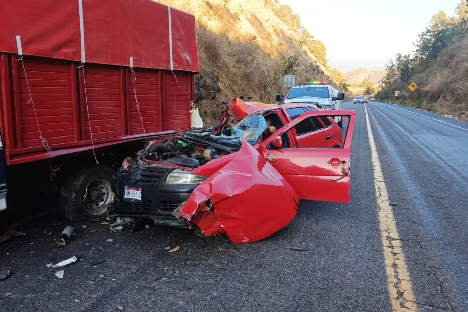 A su arribo, los socorristas atendieron a la víctima que presentaba un fuerte golpe en la cabeza, posteriormente la trasladaron a un hospital; manejaba un vehículo VW, Pointer, color rojo, con placas PRN-896-E, el cual quedó convertido en chatarra tras el choque por alcance contra una camioneta de redilas color rojo.