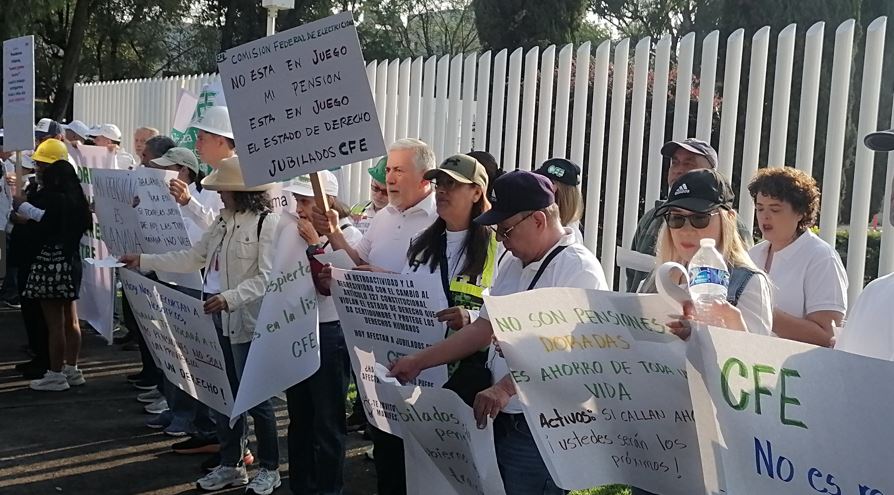 Jubilados de la CFE protestan por reducción a sus pensiones
