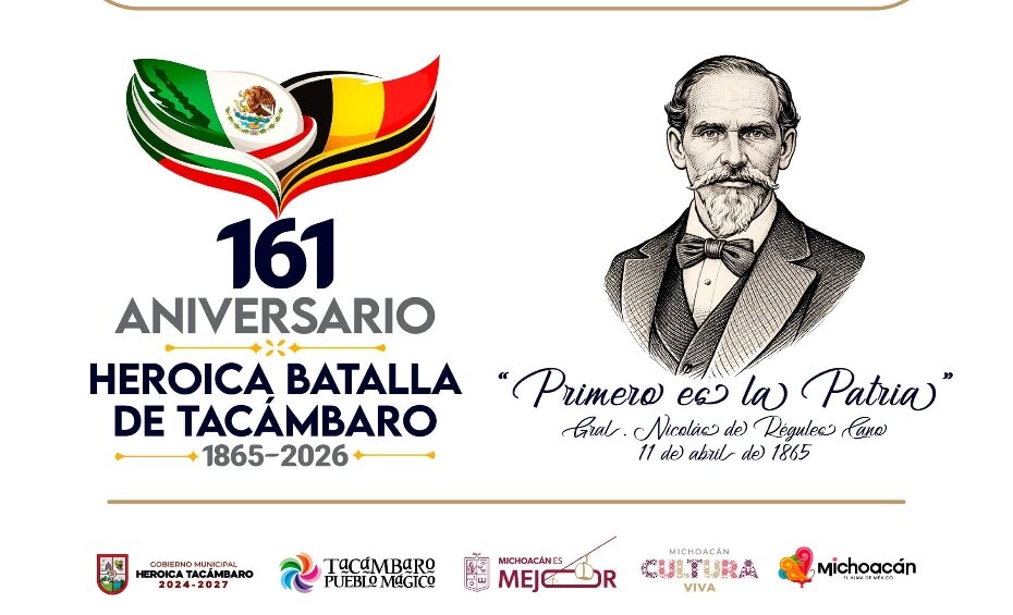 *Morelia, Michoacán, 27 de marzo de 2026.-* Michoacán conmemorará el 161 aniversario de la Heroica Batalla de Tacámbaro con actividades cívicas, culturales y académicas. La fecha recuerda el combate del 11 de abril de 1865, cuando fuerzas republicanas derrotaron a un destacamento del ejército belga durante la Intervención Francesa.