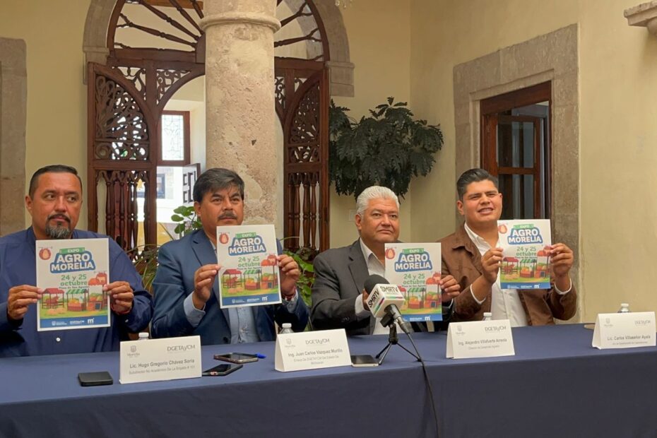 La Plaza de San Agustín será sede de la Expo Agro Morelia 2025 los días 24 y 25 de octubre, un evento que reunirá a productores y estudiantes de la Dirección General de Educación Tecnológica Agropecuaria y Ciencias del Mar (DGETAyCM) para ofrecer al público una amplia variedad de productos como lácteos, carnes, verduras y miel. La exposición, se llevará a cabo de 11:00 de la mañana a 6:00 de la tarde, así lo informó el director de Desarrollo Agrario de la Secretaría de Agricultura y Desarrollo Rural de Morelia (SADERM), Alejandro Villafuerte Arreola