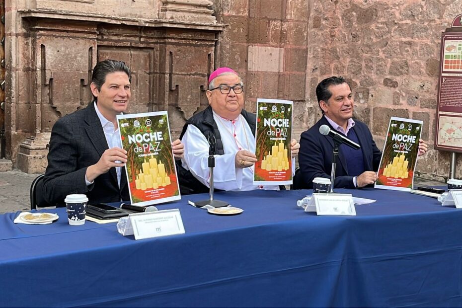 El Ayuntamiento de Morelia presentó la Cuarta Macroposada Navideña Noche de Paz, un evento que, a decir del alcalde Alfonso Martínez Alcázar, busca desbordar el espíritu navideño en la capital michoacana. La celebración se realizará el sábado 20 de diciembre, a partir de las 8:00 de la noche, con un recorrido que iniciará en el Santuario de Guadalupe y avanzará por la calzada Fray Antonio de San Miguel. Los asistentes harán paradas en los templos de Lourdes y Las Monjas, para finalmente concluir en la Catedral.