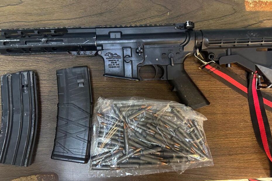 fuego tipo fusil con cargadores y cartuchos útiles y un chaleco táctico.