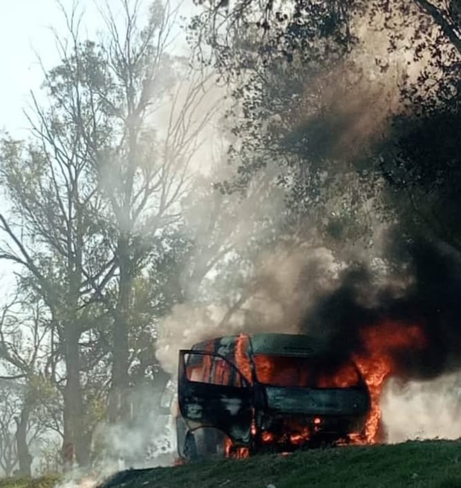 Al lugar también llegaron los bomberos locales, quienes se encargaron de sofocar las llamas; no obstante, el vehículo terminó totalmente reducido a chatarra carbonizada.