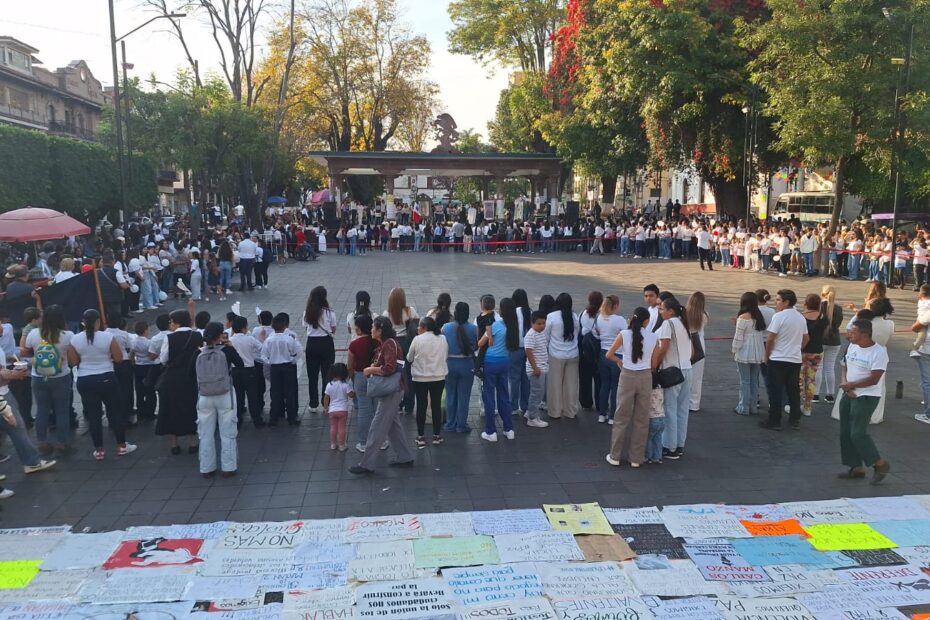 Primeramente, cientos de estudiantes de escuelas católicas se reunieron en la Pérgola Municipal para rezar un rosario y pedir por el descanso eterno de Carlos Manzo, así como por justicia, paz y seguridad para Uruapan, Michoacán y México.