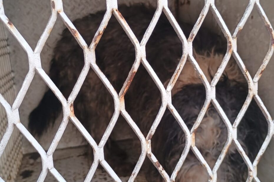 donde fueron localizados 60 perritos en condiciones de hacinamiento, algunos de ellos