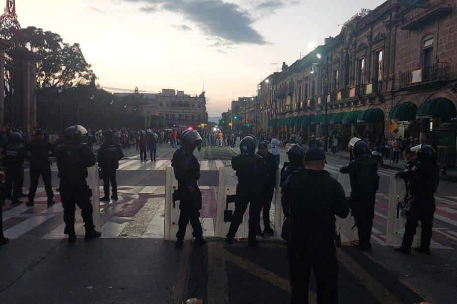 Morelia, Michoacán; 2 de noviembre de 2025.- El Palacio de Gobierno se encuentra resguardado por elementos de seguridad estatal, luego de los actos vandálicos registrados esta tarde en el Centro Histórico de Morelia, informó el secretario de Gobierno, Raúl Zepeda Villaseñor.