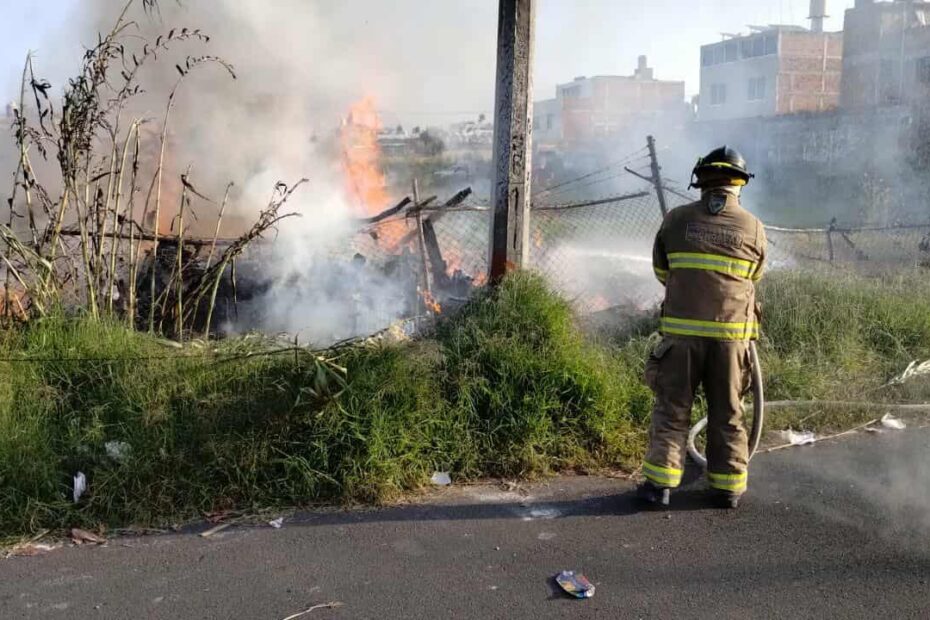 Morelia, Mich.- Jueves 16 de octubre de 2025.- Una choza de madera ardió en llamas durante la mañana de este en un predio de la colonia Obrera, ubicada en Morelia, informaron autoridades policiales y de rescate.