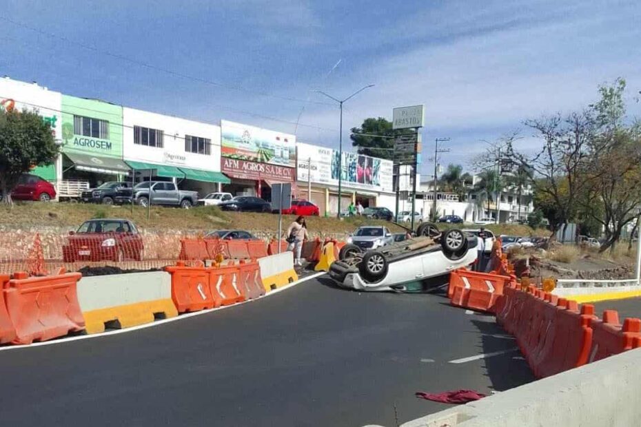 Morelia, Mich.- Martes 11 de noviembre de 2025.- Una camioneta blanca volcó sobre el Periférico Paseo de la República, en la zona oriente de Morelia, justo donde se realiza la construcción del Distribuidor Vial Eréndira, indicaron autoridades policiales.