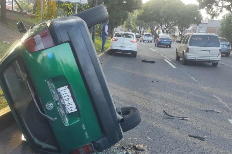 volcadura de un vehículo compacto sobre el Periférico Paseo de la República, en la zona