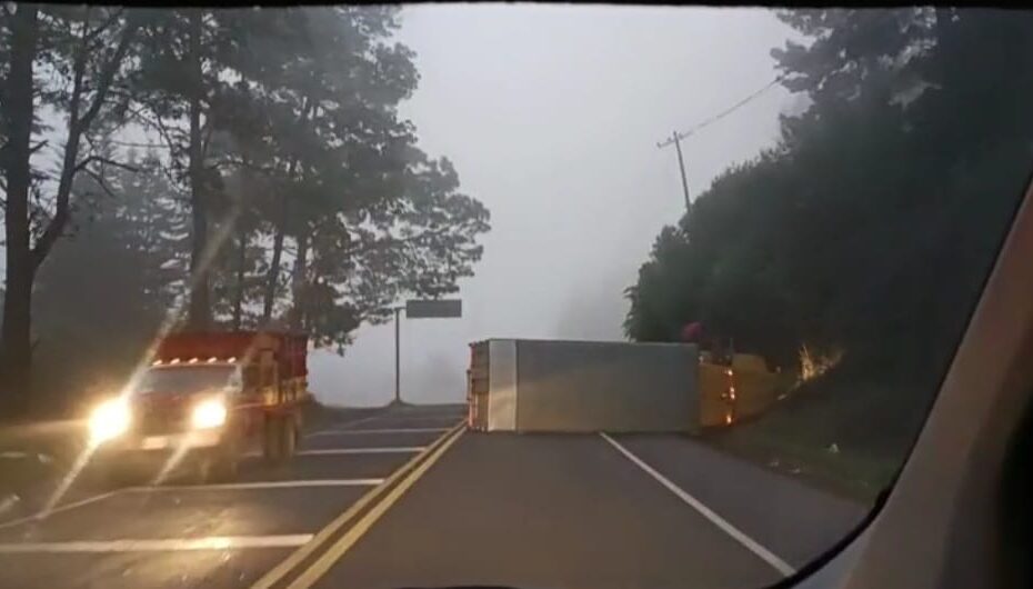 En el primero de los casos, un camión de carga tipo “rabón” volcó en las inmediaciones de la comunidad de Angahuan y la desviación a Corupo, en el lugar conocido como “Paquicho”, lo que provocó el cierre parcial de la carretera Uruapan – Los Reyes.
