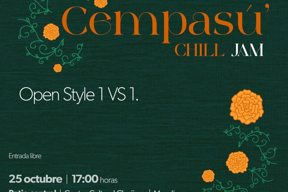 Morelia, Michoacán, 22 de octubre de 2025.- La Secretaría de Cultura de Michoacán (Secum) invita a todas y todos los amantes del baile a participar en el Cempasú´Chill Jam 2025, un encuentro que celebra la danza urbana, la creatividad y el talento joven. La cita es este sábado 25 de octubre a las 17:00 horas en el segundo patio del Centro Cultural Clavijero con entrada libre.
