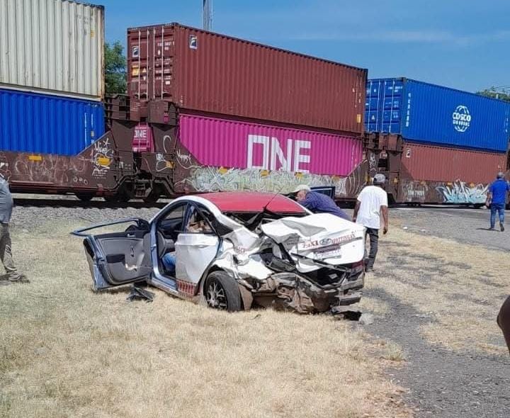 Un taxista intentó ganarle el paso al ferrocarril en la carretera libre Nueva Italia – Lombardía y fue embestido por la pesada maquina de hierro, con saldo de un lesionado.