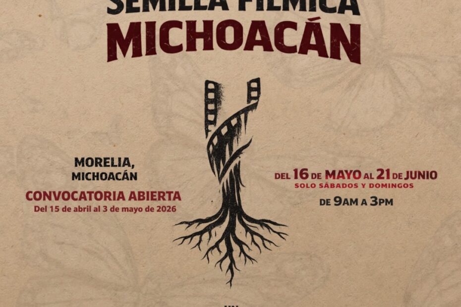 *Morelia, Michoacán, 22 de abril de 2026.-* La Secretaría de Cultura de Michoacán (Secum), en colaboración con Sembrando Cine, abrió la convocatoria para el Laboratorio de Realización Cinematográfica “Semilla Fílmica Michoacán”, un programa intensivo para aprender de forma práctica, desde la redacción del guion hasta la realización de un rodaje en condiciones reales.
