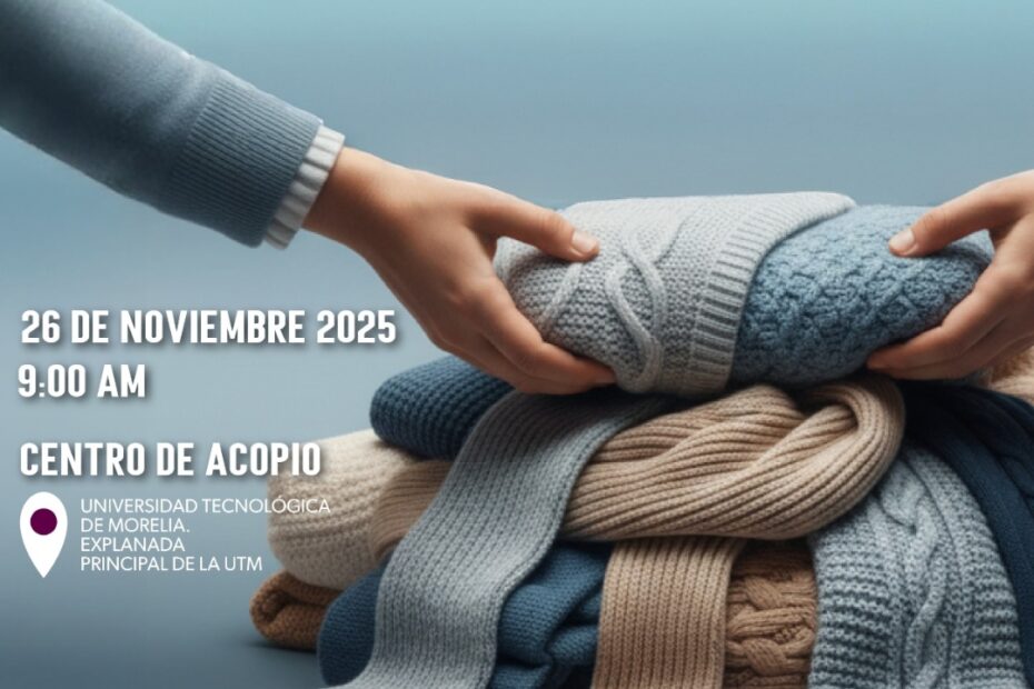*Morelia, Michoacán, 24 de noviembre de 2025.-* La Universidad Tecnológica de Morelia llevará a cabo una colecta de prendas invernales destinadas al refugio Cristo Abandonado, como parte del servicio social de estudiantes de la Ingeniería en Diseño y Moda Industrial. La actividad tiene el propósito de reunir ropa y artículos para reforzar el apoyo a personas adultas mayores.