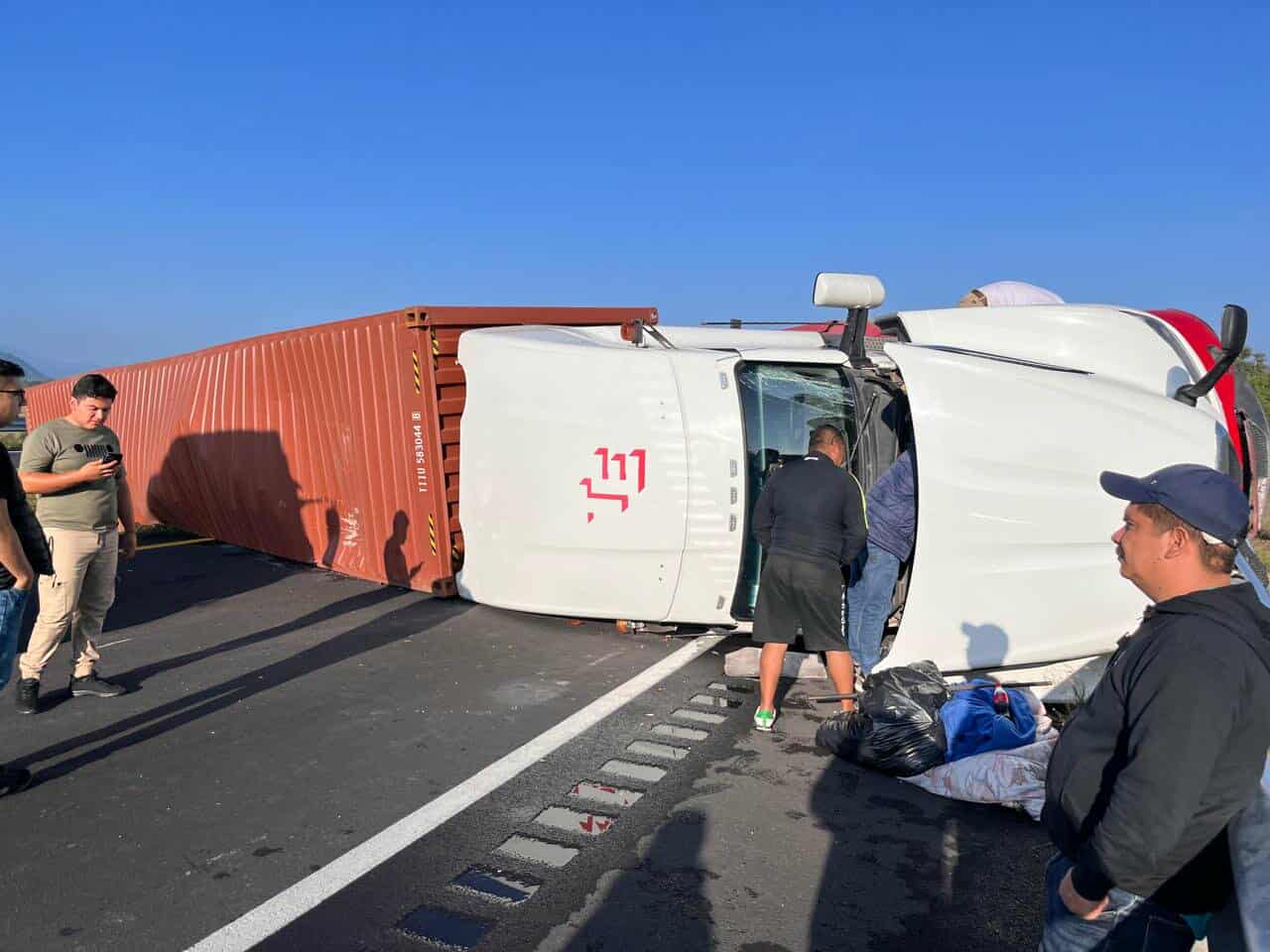 En el sitio se presentaron patrulleros de la Guardia Nacional (GN), quienes se encargaron de abanderar el incidente y realizaron el peritaje correspondiente, además pidieron el apoyo de una grúa para retirar el pesado tractocamión y despejar la vialidad.