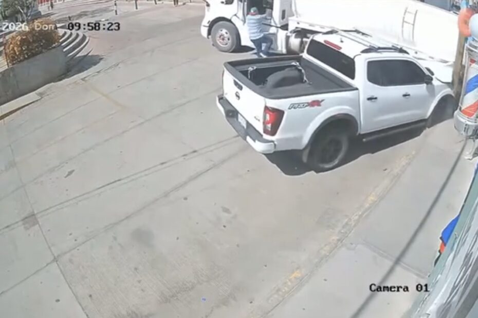 Un choque que se fue provocado por una pipa en el centro de Zimatlán de Álvarez, fue registrado en un video de una cámara de vigilancia, en donde se observó cómo la pesada unidad de motor embistió a una camioneta que se encontraba estacionada.