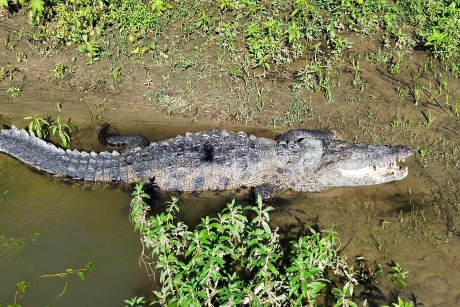 Elementos de Protección Civil realizaron un monitoreo aéreo con dron, logrando ubicar al ejemplar, del cual solo se alcanzaba a ver parte de la cola debido a su tamaño. Las autoridades señalaron que la captura del animal podría representar un reto por su longitud y fuerza.