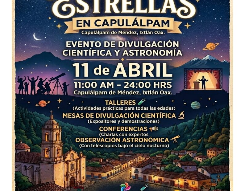 La ciencia y el asombro por el universo llegarán a la Sierra Norte de Oaxaca el próximo 11 de abril, cuando la Sociedad de Astrónomos, Científicos y Educadores Oaxaqueños A.C. lleve a cabo el evento de divulgación científica y astronomía “La magia de las estrellas” en el municipio de Capulálpam de Méndez.