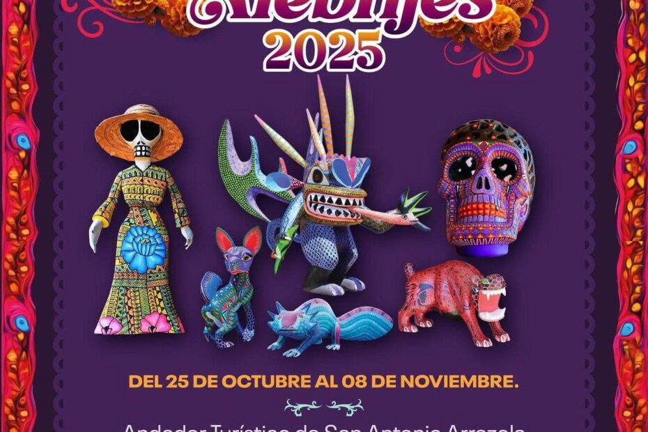 El misticismo de los alebrijes vuelve a llenar de color las calles de San Antonio Arrazola, cuna de este arte único en Oaxaca. Del 25 de octubre al 8 de noviembre se llevará a cabo la Expo Feria Artesanal de Alebrijes Arrazola 2025, en el marco de las celebraciones de los Fieles Difuntos en Santa Cruz Xoxocotlán.