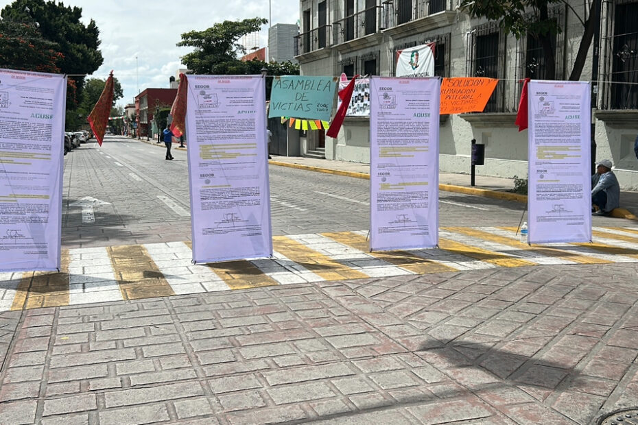 Integrantes de la Asamblea de Víctimas 2006-2007 bloqueó Avenida Juárez a la altura de los juzgados federales para pedir cumplimiento de las recomendaciones emitidas y la reparación integran del daño.