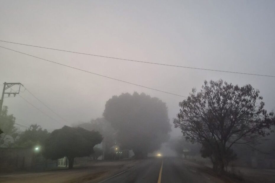 Una espesa neblina ha cubierto por completo la visibilidad desde el Monumento a Juárez en dirección a Tlacolula, borrando prácticamente el paisaje. Esta densa capa gris limita lo que se puede ver y representa un riesgo, ya que oculta posibles peligros en el camino.