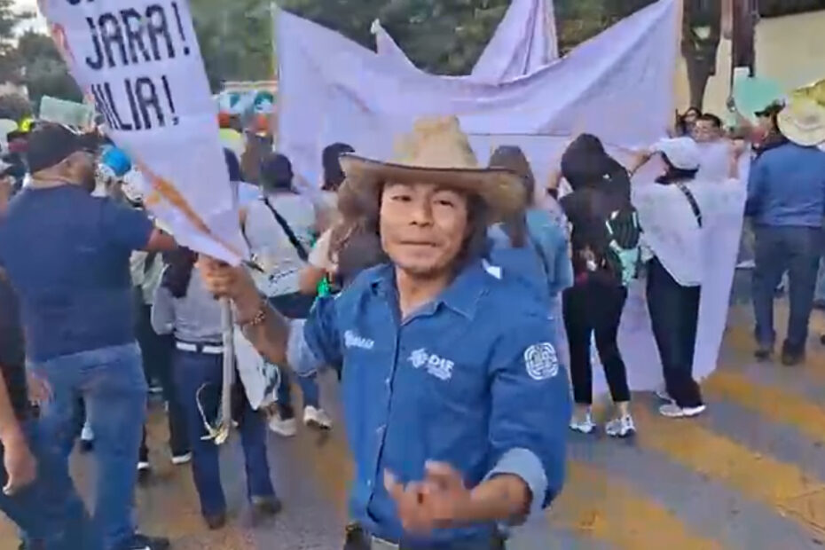 La tarde del miércoles el grupo de trabajadores que en su momento fue afectado con el decreto 24 y otros que han manifestado su descontento con la dirigencia sindical partió en marcha de la Fuente de las 8 regiones y en el crucero de la gasolinera del DIf Estatal se encontraron con la calenda oficial al cual se unieron lanzado consignas.