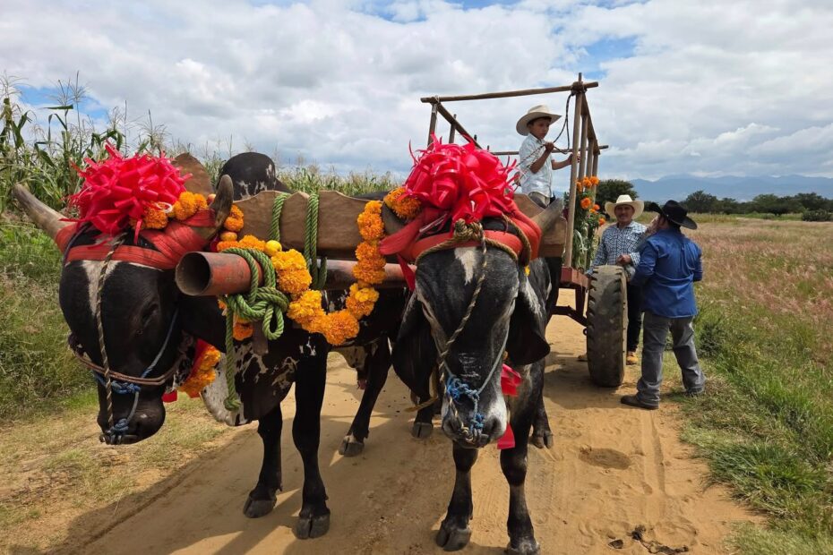 Decenas de personas, participan en el tradicional recorrido en honor a San Lucas; con sus yuntas adornadas con moños de colores y collares de fruta.