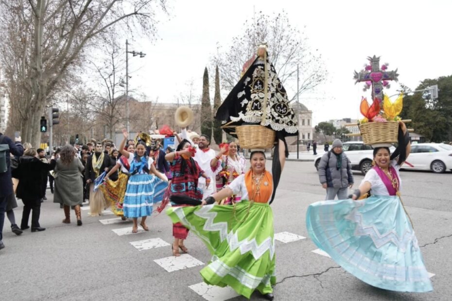 Originarias de los Valles Centrales, las Chinas Oaxaqueñas compartieron con el público internacional la riqueza de sus raíces a través de la música, el colorido de su indumentaria tradicional y sus movimientos llenos de significado. Al ritmo del jarabe del valle, transmitieron el orgullo por su herencia cultural, convirtiéndose en un puente que acercó a Madrid con Oaxaca desde la tradición y la identidad comunitaria.