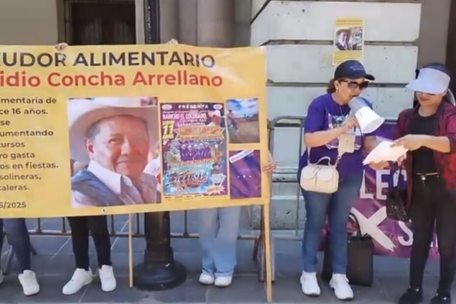 De acuerdo con las manifestantes Concha Arellano mantiene un adeudo de pensión hacia su hija desde hace 16 años y el caso está registrado en el expediente 096/2025.