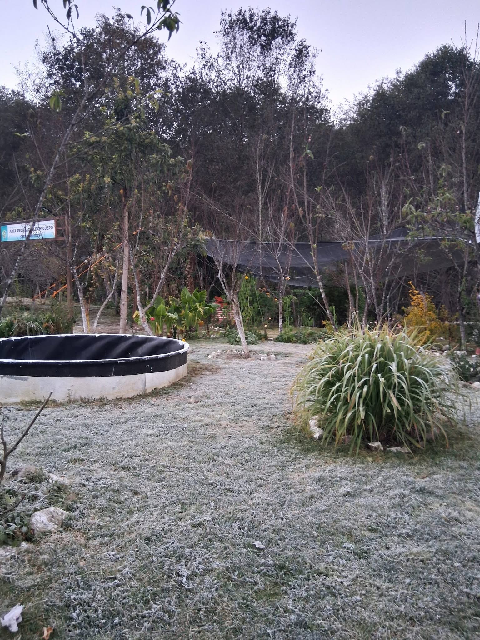 En fotografías y videos que publicaron, se pudo observar una capa ligera blanca de hielo que cubría el pasto, árboles y plantas debido a las condiciones climatológicas que imperaban.