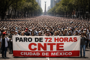 Este jueves continúa la marcha y plantón de la CNTE en la Ciudad de México, como parte de su paro nacional de 72 horas, lo que mantiene bloqueos en diversas vialidades del centro y principales avenidas. La movilización parte del Ángel de la Independencia hacia el Zócalo, donde los maestros mantienen su campamento.