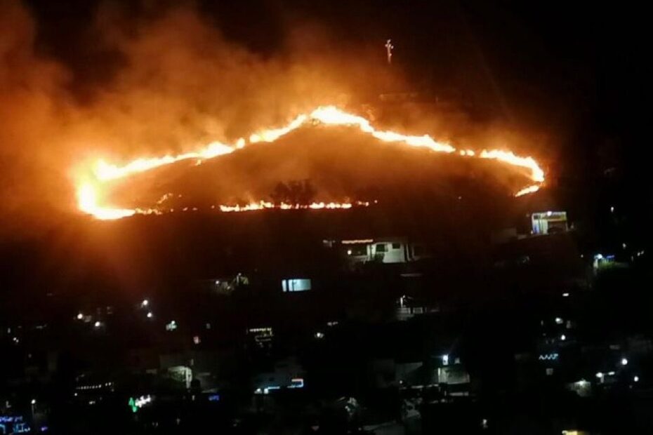 La tarde noche del lunes, desde diversos puntos de la Ciudad de Oaxaca se observó y alertó un incendio que se inició en este pulmón y que avanzaba rápidamente.