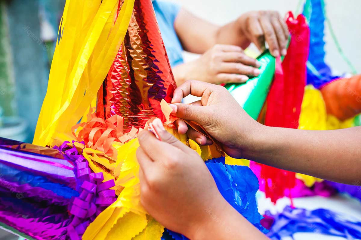El proceso, lejos de ser sencillo, requiere horas de trabajo minucioso. Primero se arma la estructura, que tradicionalmente se elabora con una olla de barro o una base de cartón reforzado. Después se fijan los picos, hechos con conos de cartón cuidadosamente cortados y moldeados para lograr la forma simétrica que caracteriza a la piñata clásica de siete puntas. A partir de ahí comienza la etapa favorita de muchos artesanos: vestirla con flecos de papel chino, capa por capa, hasta lograr el estallido de color que la distingue.