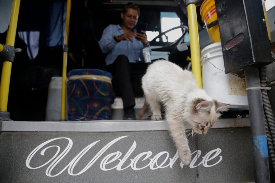 Zafiro se hizo viral por su ternura y por “trabajar” como acompañante del chofer, recibiendo a los pasajeros con maullidos y curiosidad.