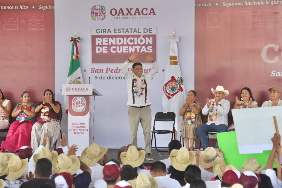 El gobernador Salomón Jara Cruz, llevó a cabo su gira de rendición de cuentas en San Pedro Pochutla, en donde afirmó que se han invertido más de 28 mil millones de pesos para el desarrollo de la entidad, y por ello, para la segunda parte de su gobierno, redoblará los esfuerzos en beneficio de la sociedad.