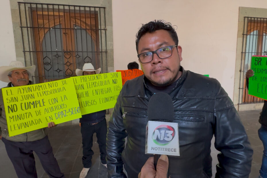 Habitantes de la agencia de San Miguel Marcos Pérez, perteneciente a San Juan Teposcolula, protestaron para exigir que su presidente municipal Daniel Santiago Ramos, les otorgue los recursos de los tamos 28 y 33 que les ha negado para obras y servicios.