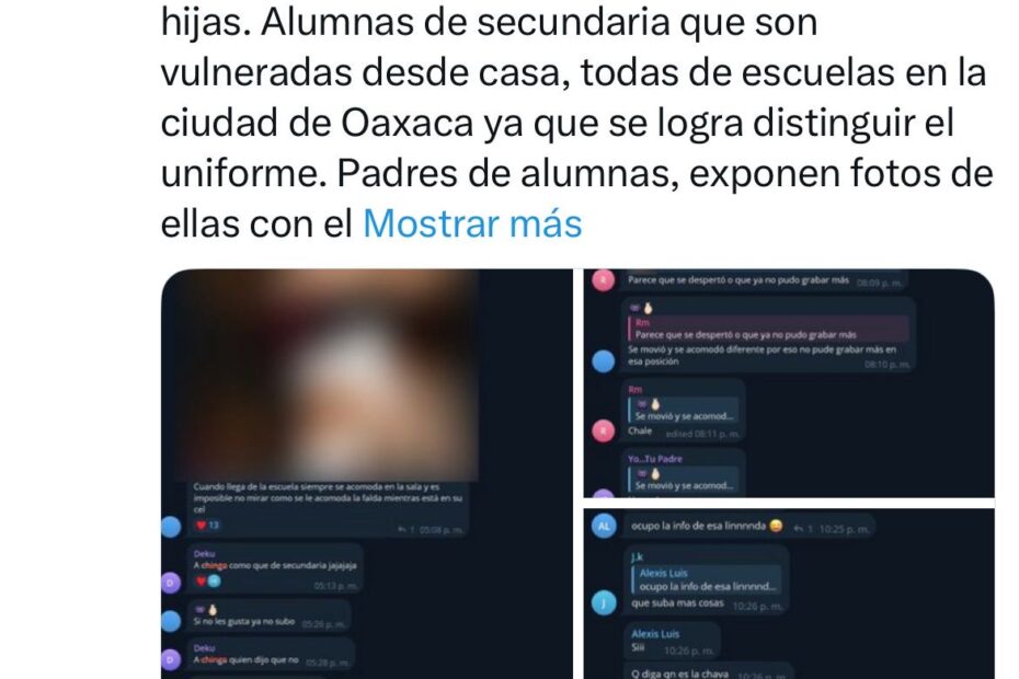 La Fiscalía General del Estado de Oaxaca inició de oficio la carpeta de investigación 30453/UNNA/2025, el 18 de noviembre de 2025, por el delito de violación a la intimidad sexual de menores de edad, luego de la denuncia publicada en redes sociales sobre la difusión de imágenes de contenido sexual en una plataforma digital de mensajería.