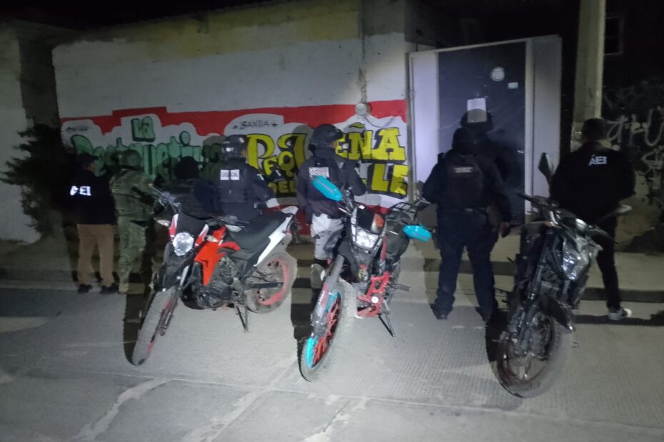 Como resultado del cateo, se aseguraron tres motocicletas que cuentan con reporte de robo vigente, las cuales fueron puestas a disposición del Ministerio Público para la integración de la carpeta de investigación correspondiente y la realización de los actos periciales necesarios.