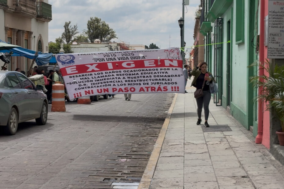 Jubilados de la Sección 22 de la Coordinadora Nacional de Trabajadores de la Educación (CNTE), bloquearon las oficinas sindicales y la calle de Armenta y López, incrementando las afectaciones viales en la ciudad.