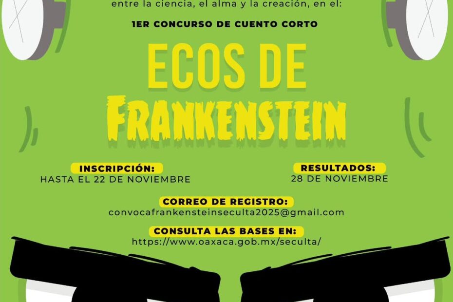 Tras la reciente proyección en Oaxaca de Frankenstein, la más reciente producción de Guillermo del Toro, la Secretaría de las Culturas y Artes del estado abrió la convocatoria para el primer Concurso de Cuento Corto “Ecos de FRANKENSTEIN”, una iniciativa que busca fortalecer el hábito lector y acercar al público joven al arte cinematográfico.