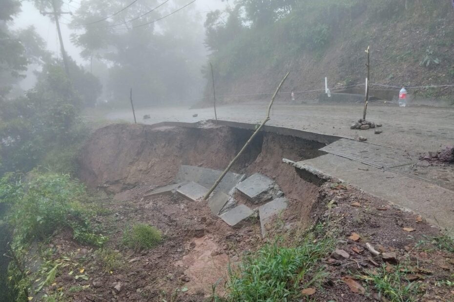 Las intensas lluvias registradas en las últimas horas provocaron el deslave y colapso parcial de la carretera artesanal que conecta San Lucas Arroyo Palomo con San Juan Palantla, en el municipio de Valle Nacional, en la Cuenca del Papaloapan.