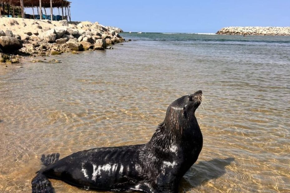Un lobo marino fue captado descansando y recuperando fuerzas a orillas de playas de Pinotepa Nacional, como Playa Mariano Matamoros.