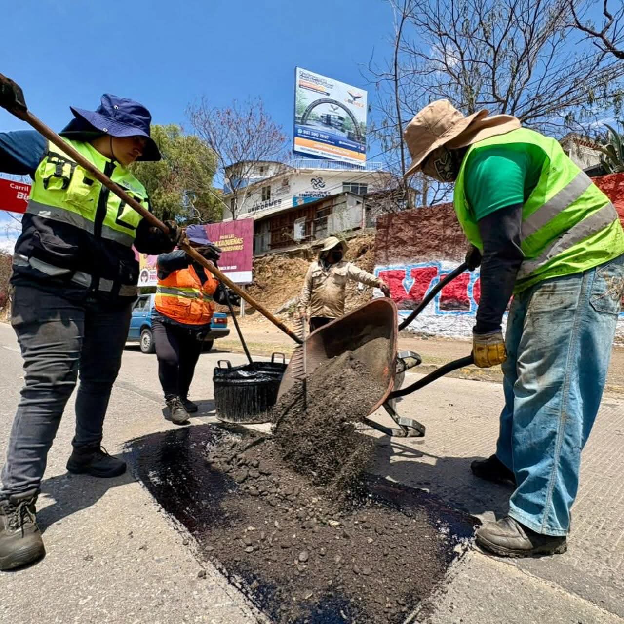 El Gobierno Municipal de Oaxaca de Juárez sigue realizando trabajos de bacheo en diferentes puntos de la capital.