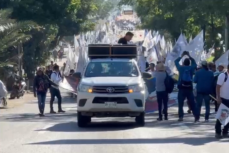 Reunidos en el crucero del ex ieepo, las y los manifestantes partieron rumbo al zócalo de la ciudad capital, lo que causó complicaciones en el tránsito de vehículos durante el recorrido de la marcha.
