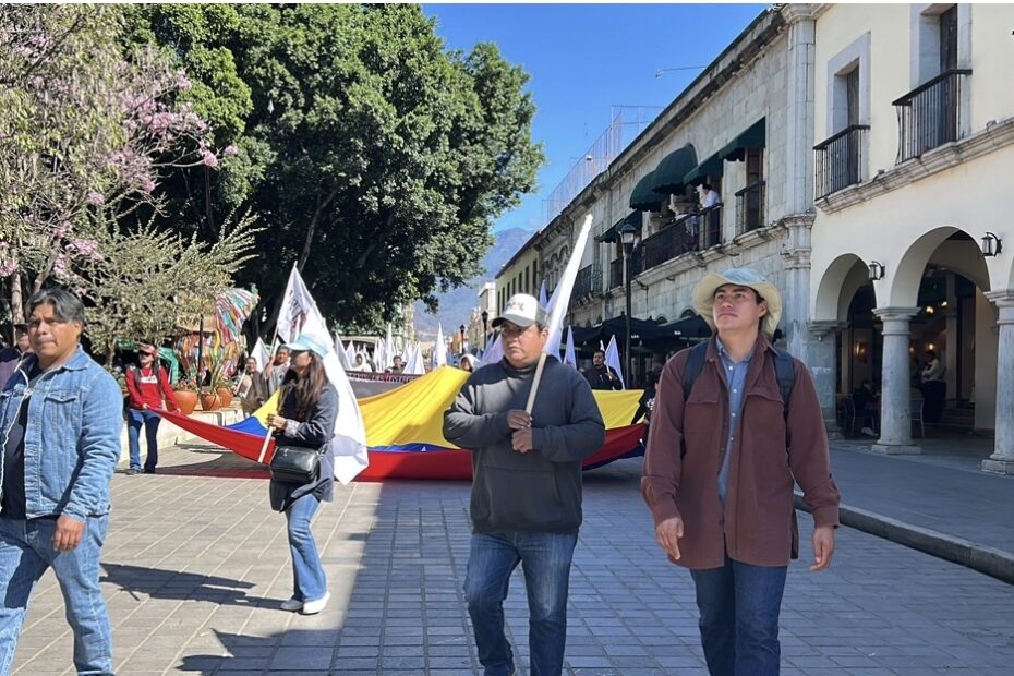 Unión de Artesanos y Comerciantes en Lucha (UACOL) y organizaciones sociales afines realizaron una marcha de la Fuente de las 8 regiones al zócalo de la ciudad de Oaxaca, como parte de su jornada estatal de lucha contra la “derecha fascista”.
