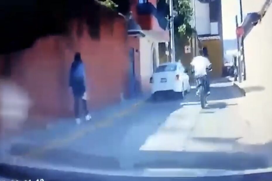 El momento fue grabado por una persona que circulaba a bordo de su automóvil y quien segundos antes el motociclista había rebasado.