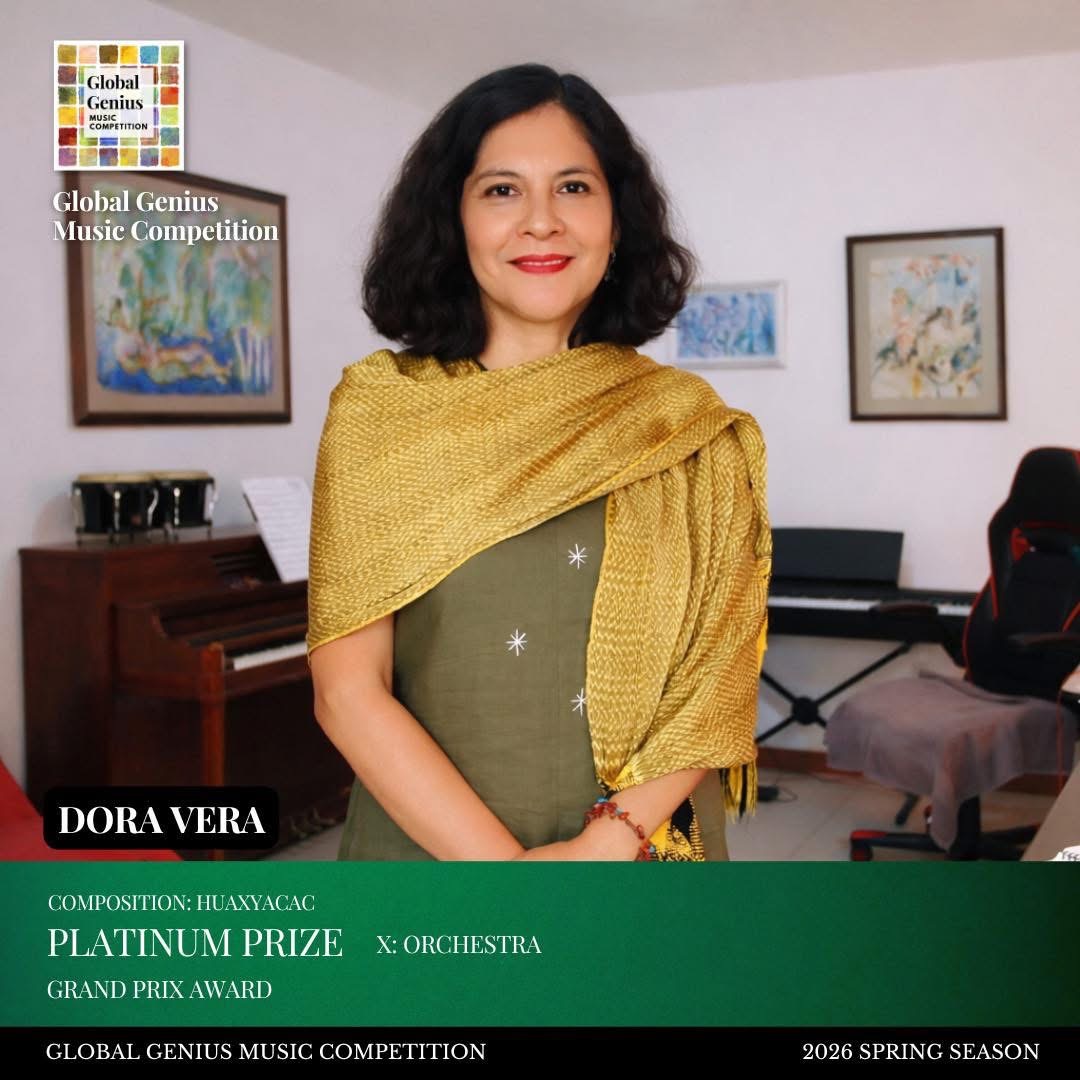 La compositora Dora Vera ha logrado proyectar a Oaxaca y a México en lo más alto del panorama musical internacional. Su pieza “Huaxyacac”, un sentido tributo sinfónico a la capital oaxaqueña, fue reconocida con dos de los galardones más importantes del Global Genius Music Competition 2026: el Grand Prix Award y el Platinum Prize, correspondientes a la temporada de primavera.