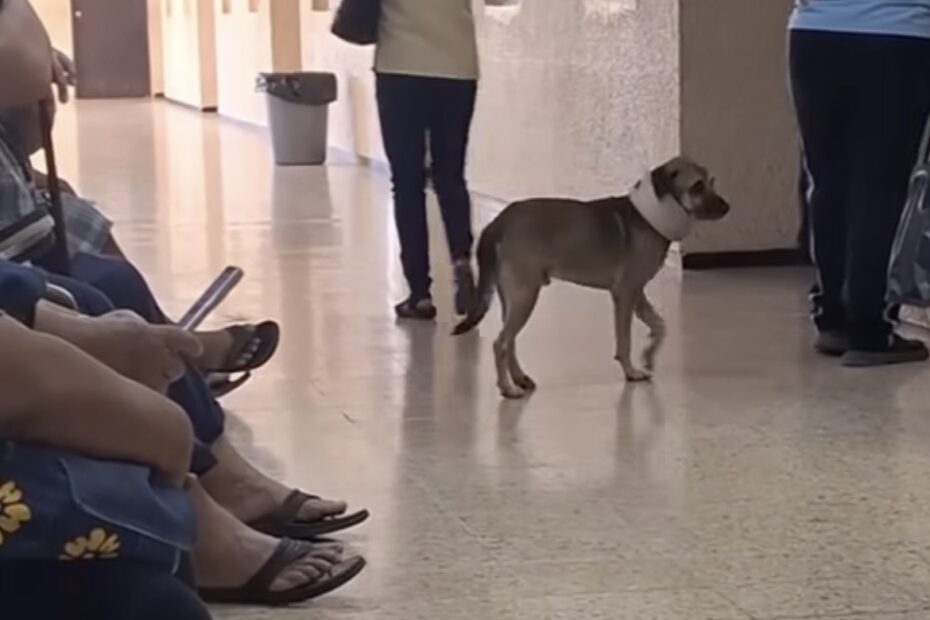 Una imagen muestra a un lomito con collarín esperando pacientemente su turno en la sala de una clínica en Yucatán, una escena que rápidamente conquistó a los usuarios.