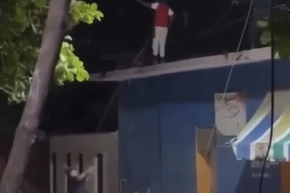Se observó que los policías buscaron amarrarlo con una cuerda, lo cual no lograron conseguir de momento, hasta que el señalado se enredó en la cuerda y resbaló lentamente de una de las azoteas, hasta llegar al piso.